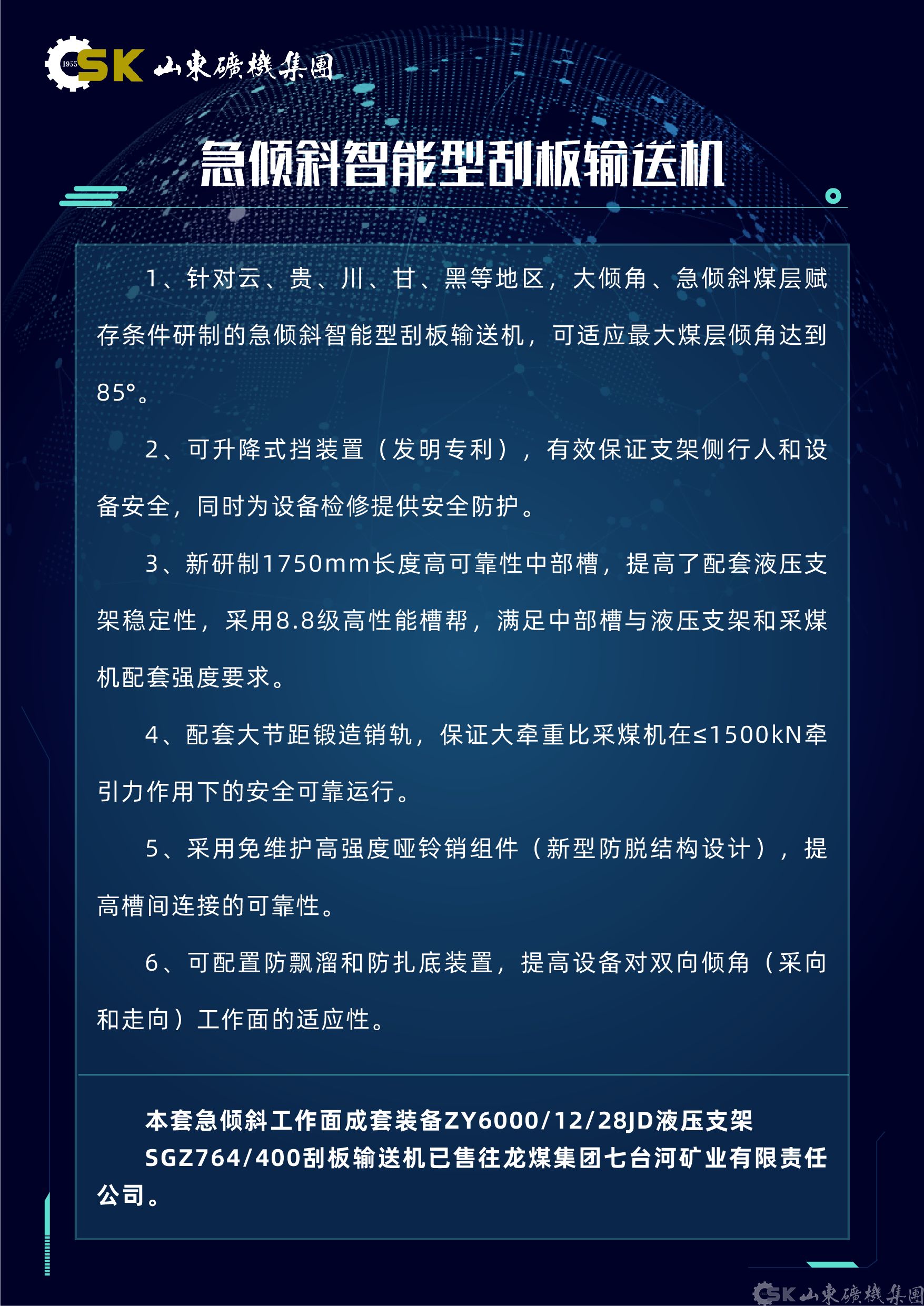 智能綜采成套裝備展現(xiàn)技術(shù)實(shí)力,如山東礦機(jī)重點(diǎn)展示了超長(zhǎng)運(yùn)距智能型刮板輸送機(jī),該設(shè)備采用交叉?zhèn)刃稒C(jī)頭設(shè)計(jì),卸載效率提升25%以上。針對(duì)特殊地質(zhì)條件開發(fā)的急傾斜智能型刮板輸送機(jī),可適應(yīng)最大85°煤層傾角,其可升降式擋煤裝置已獲發(fā)明專利,配合公司研制的急傾斜液壓支架,憑借智能化程度高適應(yīng)性強(qiáng),在龍煤集團(tuán)等廣泛應(yīng)用效果顯著。在液壓支架領(lǐng)域,公司推出三伸縮大調(diào)高比液壓支架,能靈活適應(yīng)厚度變化大的煤層條件。超大采高支架配置三級(jí)護(hù)幫結(jié)構(gòu),滿足特厚煤層開采需求。專為極寒環(huán)境設(shè)計(jì)的液壓支架通過40000次耐久試驗(yàn),展現(xiàn)出卓越的可靠性和適應(yīng)性。